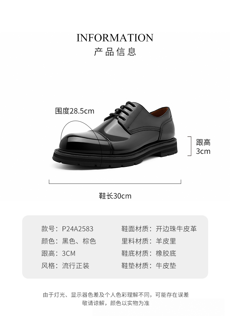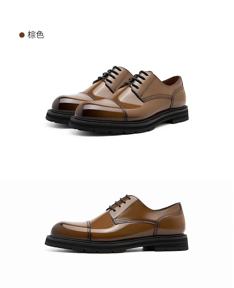 开边珠牛皮接头德比鞋